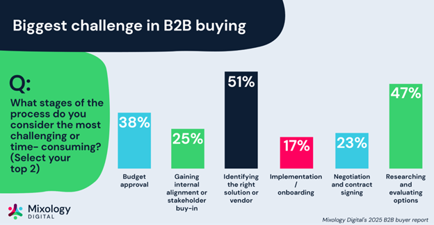 Did you know that 51% of B2B buyers say that finding the right solution or vendor is the most time-consuming part of the buying process?